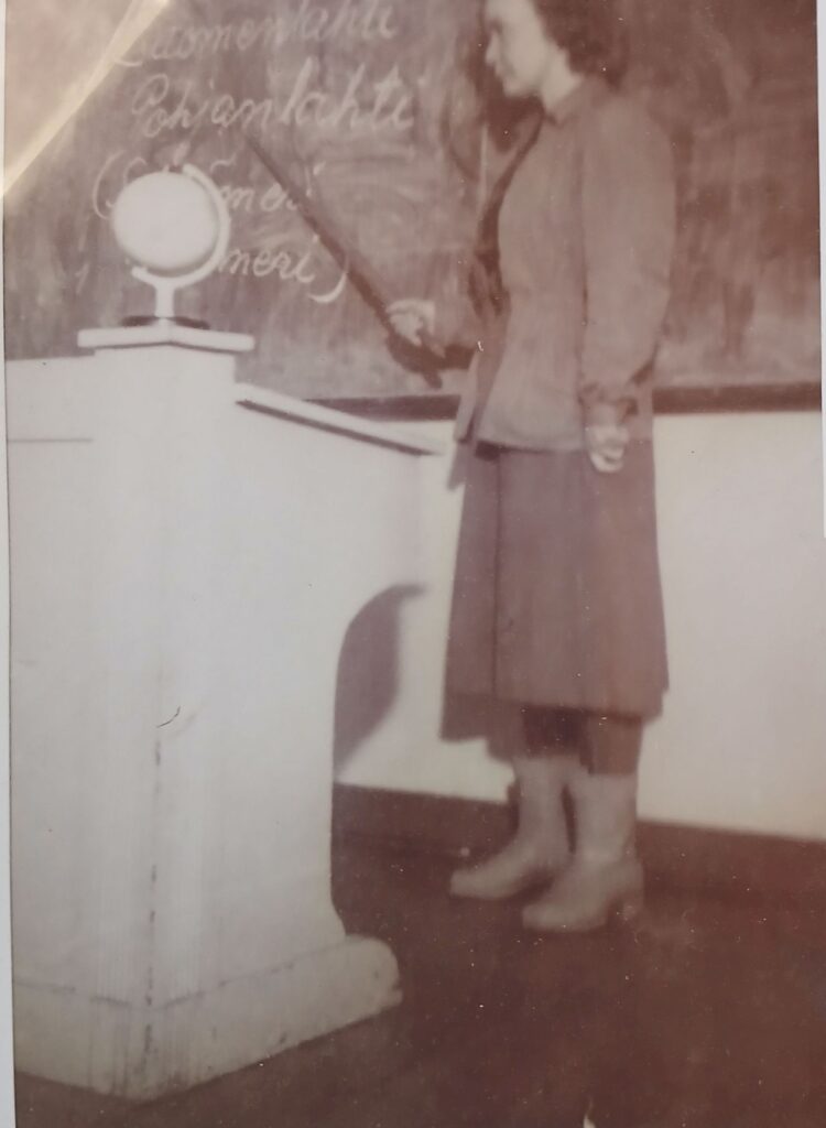 Koko työuransa äiti teki Rääkkylässä, ensin pikaisesti Niemisessä ja sitten koko loppuajan eli nelisenkymmentä vuotta Rasivaaran koulussa. Maantieto oli hänelle mieluinen opetusaine, mutta ykkösasia oli kuitenkin suomen kieli.