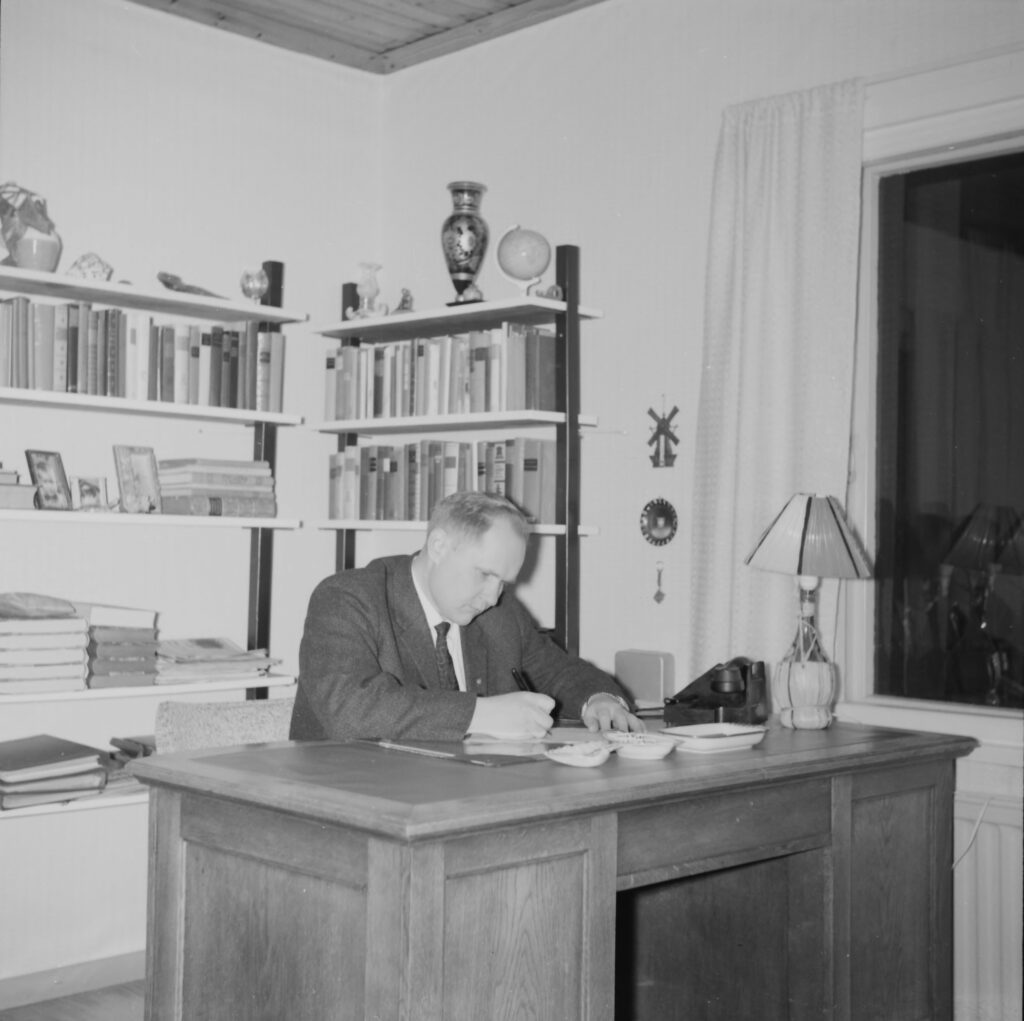 Isä-Keijosta tuli sitten opettaja, kuten tiedetään. Ja töitä riitti niin koulun puolella kuin kotona kirjoituspöydän ääressä. Mitä nyt muilta kiireiltään ehti.